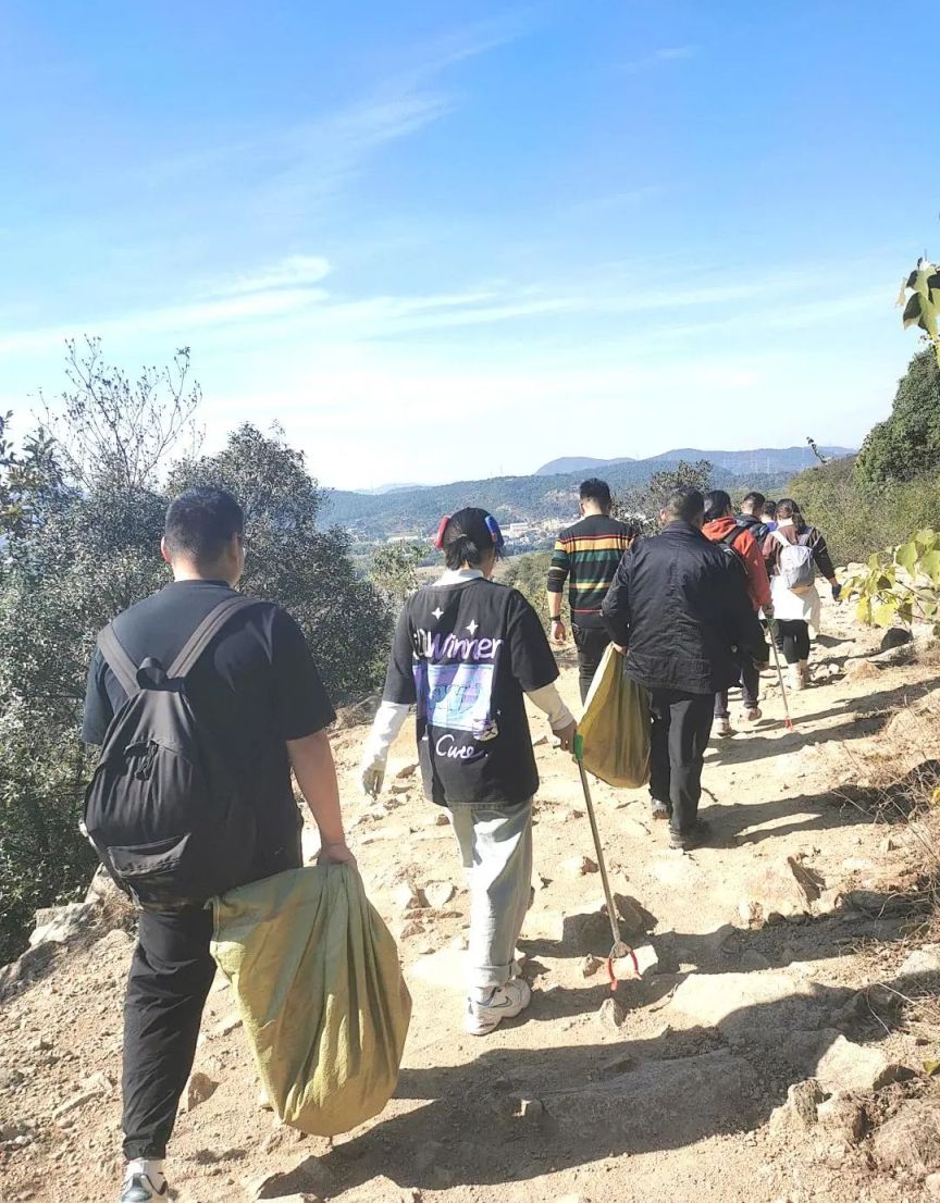 11月18日上午10点,所有参加活动的小伙伴在灵岩山脚下集合,领发工具后一起斗志昂扬的向山上进发。