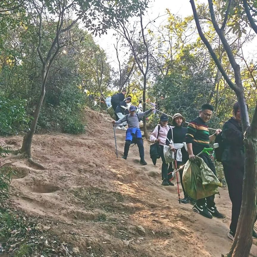 越过灵岩山后星空真人 到了下一个山头——大焦山,在后段山体,垃圾变的越来越多,烟头、饮料瓶、易拉罐、湿纸巾、食品包装袋种类繁多,数不胜数,小伙伴们依然斗志满满,尽自己所能捡起能看见的垃圾。