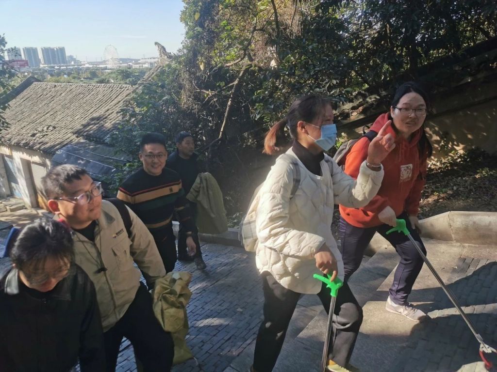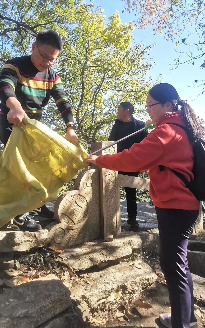 11月18日上午10点,所有参加活动的小伙伴在灵岩山脚下集合,领发工具后一起斗志昂扬的向山上进发。